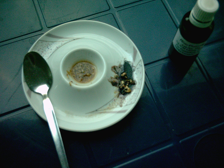 | ... zuvor wird die sogenannte Jodprobe durchgeführt, an welcher man erkennen kann, ob ausreichend vergärbarer Zucker entstanden ist... ...ist dies der Fall, dann verfärbt sich das Jod nicht (links auf dem Bild), andernfalls wird die Probe schwarz (rechts auf dem Bild) ... |