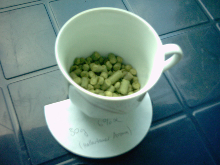 | ... nun geht es ans Würze-/Hopfenkochen ... dazu wird der benötigte Hopfen beim Kochen der Würze hinzugefügt (dies geschieht wieder in unterschiedlichen Mengen und zu unterschiedlichen Zeiten, je nach Rezept) ...  |
