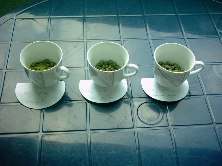 | ... hier plumpst der Hopfen in den kochenden Sud ...  |