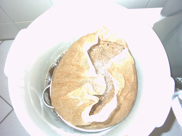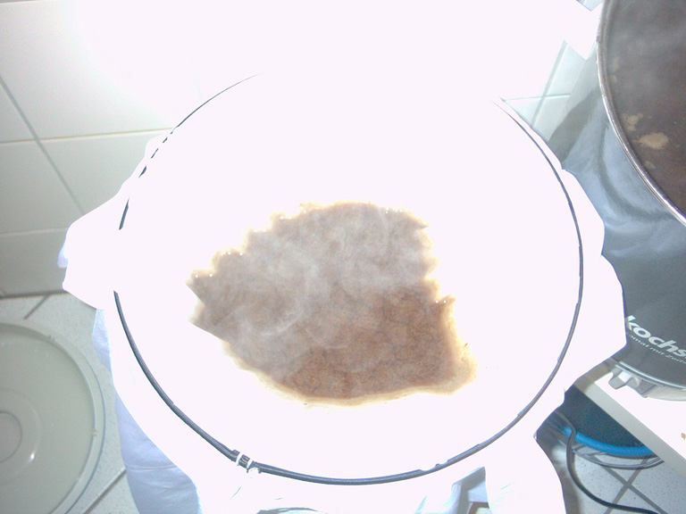 | ... nach dem das Malz verschiedene (genau bestimmte) Zeiten bei unterschiedlichen Temperaturen gerastet hat, wird es abgeläutert - gefiltert ...  |